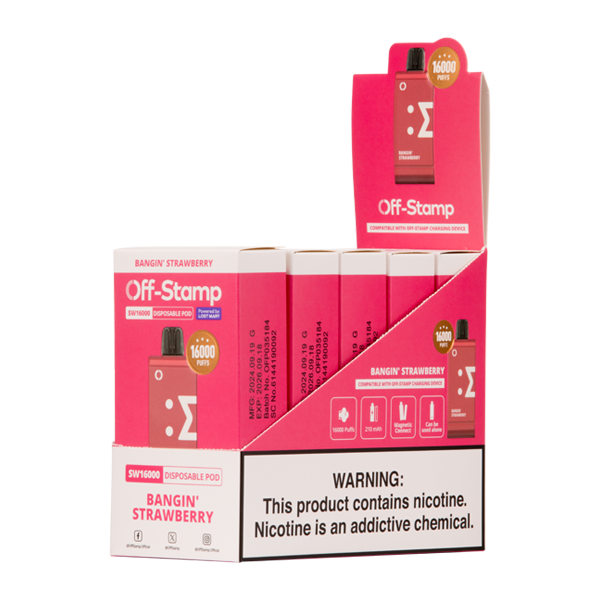 - Flavor: The Bangin Strawberry Off Stamp SW16000 uses a blast of ripe, succulent strawberry flavoring.