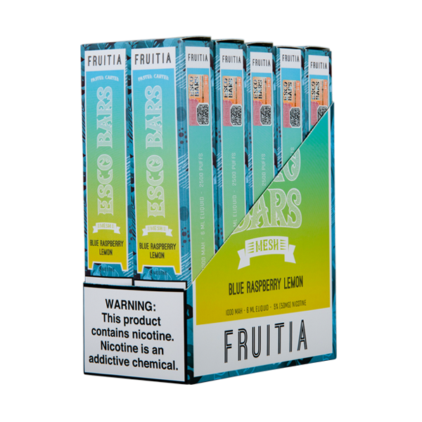 The Blue Raspberry Lemon Esco Bar by Fruitia blends a sweet blueberry and raspberry mix with a tangy lemon taste to round out the perfect balance of sweet and sour.